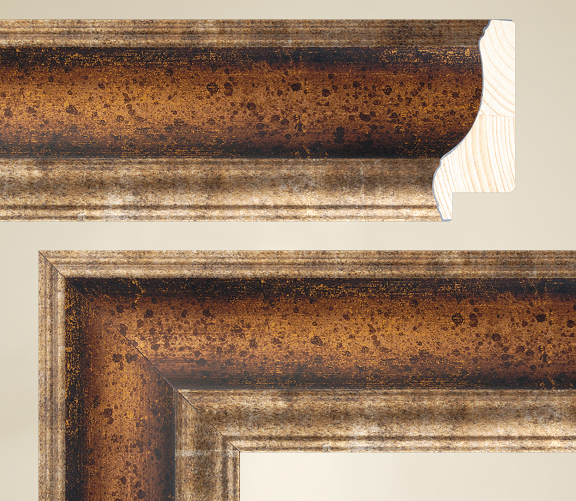 | Viel Struktur scheint der Gemälderahmen Susanne erhalten zu haben. Dabei haben die Designer der Rahmenserie Ambiente dies allein durch die Farbgebung geschafft. Denn die Leiste an sich ist in glattem Holz gearbeitet. Fast wie ein Relief zeigt sich nur die äußere Leiste, da diese aus drei filigranen aneinandergereihten Holzlinien besteht. Farblich erhielt dieser Teil des Rahmens eine Silbermaserung, die den Betrachter an Marmor erinnert. Wie aufgetupft mischt sich das Silber hier mit dunklen Brauntönen und erinnert in der Form der Auftragung an das edle Gestein. Dieselbe Farbgebung hat die Innenleiste bekommen. Da diese etwas breiter ist und aus einer Rundleiste besteht, kommt der Marmoreffekt hier noch etwas gezielter zum Ausdruck. Umrandet ist die runde Leiste oben und unten jeweils von sehr feinen Leisten. Im starken Kontrast zu den beiden marmorierten Leisten steht der innere Hauptteil des Rahmens Susanne. Eine breite, nach innen gewölbte und glatte Fläche bildet diese Mittelleiste. Ihr hat man eine Mischung aus zahlreichen verschiedenen Brauntönen gegeben. Die Grundfarbe ist ein helles, rötliches Braun. Im Farbverlauf geht es sowohl nach oben als auch nach unten hin in ein Schwarz über. Als hätten die Designer nicht genug bekommen, wurden noch dunkelbraune Punkte und heller Farbabrieb hier und da eingesetzt. |