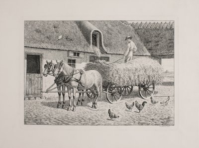 Danish: En høstvogn i en bondegård