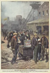 england · englisch · großbritannien · britisch · streik · stürmer · streikende · arbeiter · arbeitskräfte · bergmann · minderjährige · bergbau · geheimnis · abstimmung · abstimmung · abstimmungen · wählen · union · gewerkschaften · unionist · funktioniert · rauch · männer · mann · junge · jungs · politik · politisch · Private Collection / Bridgeman Images · / Look and Learn