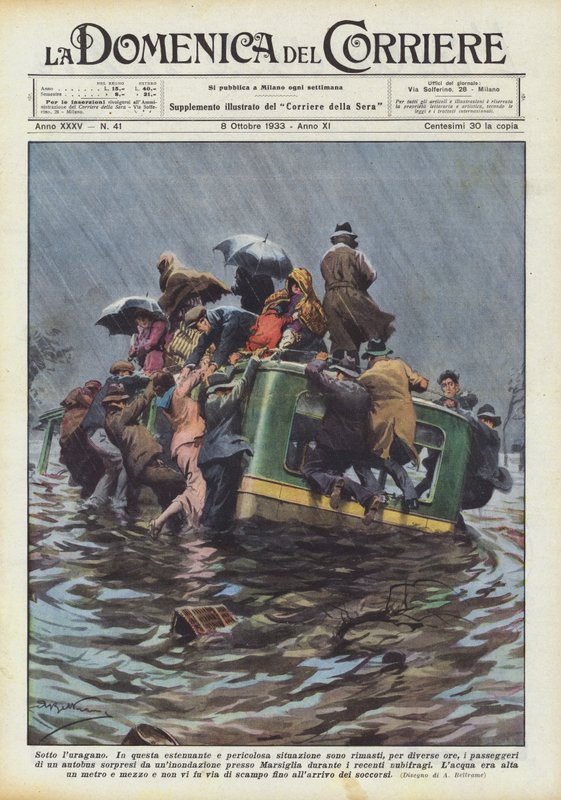 frankreich · französisch · marseille · flut · überflutet · Überschwemmung · wasser · fluss · flüsse · meer · ozean · welle · wellen · busse · klettern · geklettert · an bord · umgeworfen · umkippen · regen · regen · geregnet · regnet · sturm · stürme · platzregen · regenschirm · sintflutartig · junge · jungs · mädchen · mädchen · kind · kinder · männer · mann · frauen · frau · straße · straßen · stadt · wetter · katastrophe · katastrophen · natürlich · Private Collection / Bridgeman Images · / Look and Learn |