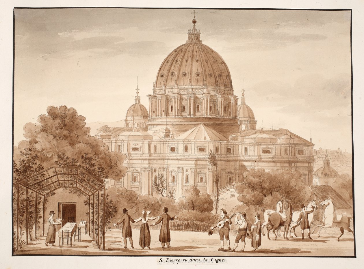 St. Peter's von einem Weinberg aus gesehen, 1833(St. Peter's seen from a vineyard, 1833 (etching with brown wash))Agostino Tofanelli |