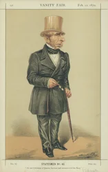 herr john somerset pakington · vorsitzender · marine · cartoon · eitelkeitsmesse · rekonstruiert · karikatur · 12. februar 1870 · viertelsitzungen · Private Collection / Bridgeman Images · / Look and Learn