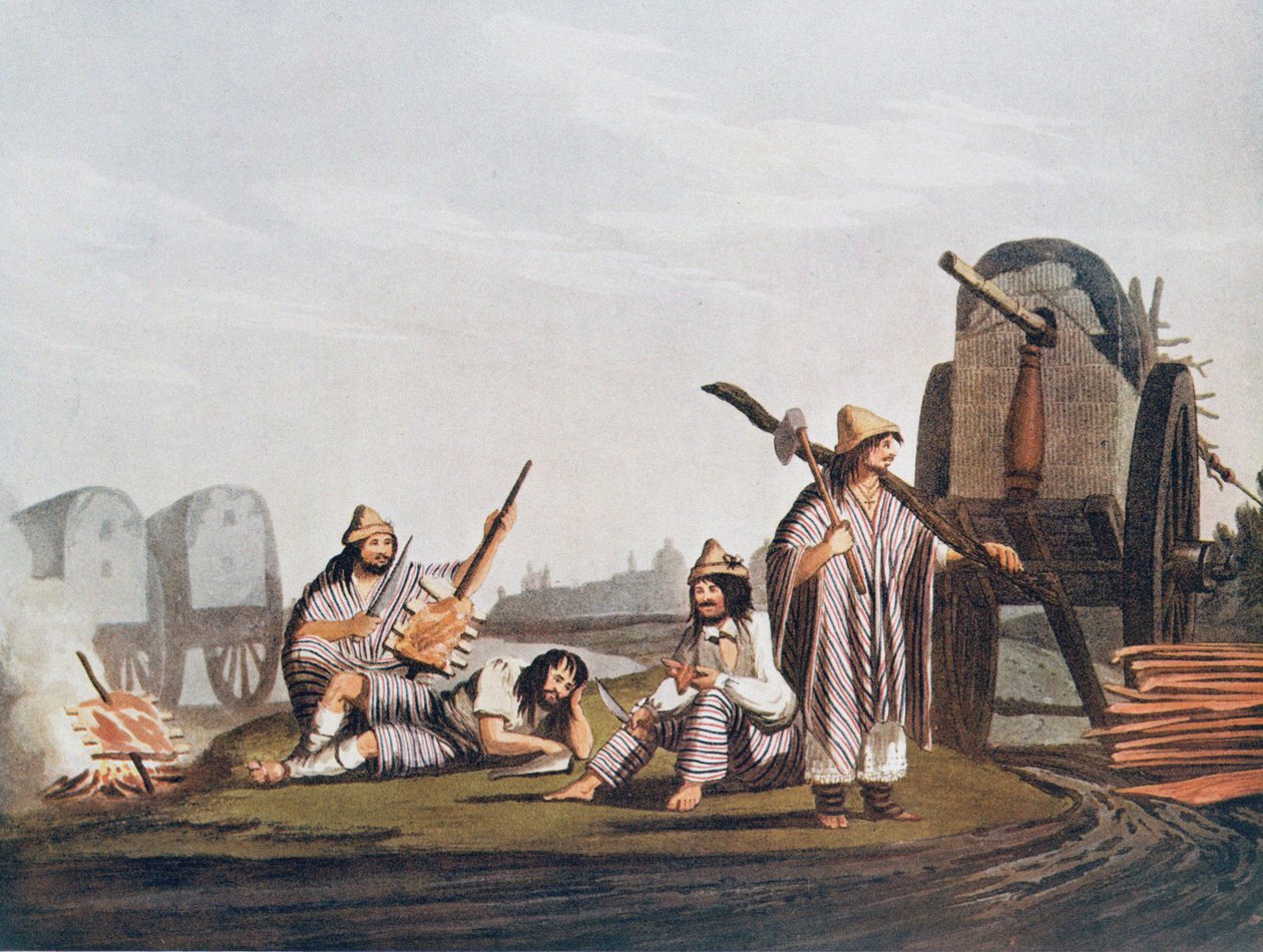 Gauchos von Tucuman, reproduziert aus Vidals 'Picturesque Illustrations of Buenos Aires and Montevideo', veröffentlicht 1820, aus 'The Romance of the River Plate', Band II, W. H. Koebel, 1914(Gauchos of Tucuman, reproduced from Vidal's 'Picturesque Illustrations of Buenos Aires and Montevideo', pub. in 1820, from 'The Romance of the River Plate', Vol. II, W. H. Koebel, 1914 )American School |