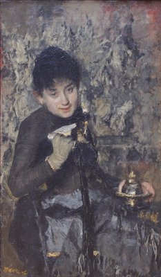 Frau mit Tintenfass, ca. 1875(Woman with inkwell, c.1875 (oil on canvas))Antonio Mancini |