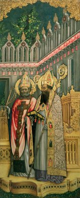 St. Hieronymus und St. Gregor, linkes Panel aus Die Jungfrau auf dem Thron mit den Heiligen Hieronymus, Gregor, Ambrosius und Augustinus, 1446 (nach der Restaurierung)(St. Jerome and St. Gregory, left panel from The Virgin Enthroned with Saints Jerome, Gregory, Ambrose and Augustine, 1446 (post restoration) (see 160893-99))Antonio Vivarini |