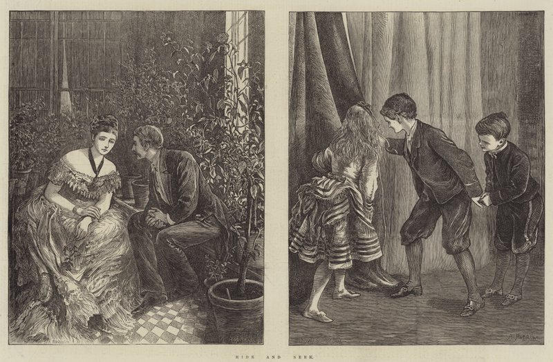 verbergen · verstecken · suchen · romantik · kinder · vorhänge · humor · Private Collection / Bridgeman Images · / Look and Learn |