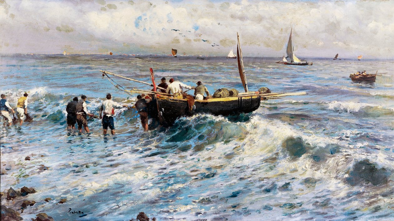 Meereslandschaft mit Fischern(Seascape with fishermen (painting))Attillo Pratella |