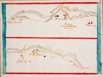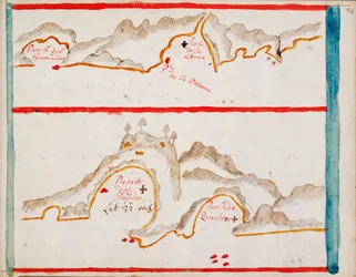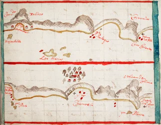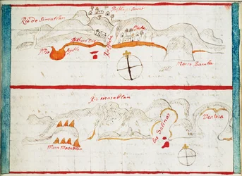 17. jahrhundert · amerika (kontinent) · südamerika · kartografie · kolonie · farbe · zeichnung · kunst · spanien · europa · geografie · küste · meer · manuskript · karte · hafen · mz-zeichnung · National Maritime Museum, London, UK / Bridgeman Images