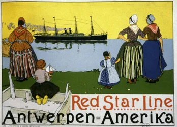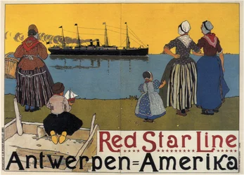 Transatlantik-Liner Antwerpen/Amerika. Werbung für die Red Star Line, ca. 1900(Transatlantic liner Antwerp/America. Advertising for the Red Star Line, c.1900 (print))Belgian School |