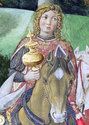 Reiter in der königlichen Entourage, Detail aus dem Zyklus der Reise der Heiligen Drei Könige in der Kapelle, ca. 1460 (Detail) Detail aus dem Zyklus Die Reise der Heiligen Drei Könige in der Kapelle, ca. 1460 (Fresko) Die Prozession der Heiligen Drei Könige (Detail) Die Anbetung der Könige Die Reise der Heiligen Drei Könige (Detail) Allegorie des März: Borso d Zwei livrierte Diener und der Kopf von Lorenzo dem Prächtigen Die Anbetung der Könige, Detail der Pferde Die Reise der Heiligen Drei Könige (Detail, Darstellung von Joseph, Patriarch von Konstantinopel) Karl V. (1500-1558) von Spanien (Detail) Allegorische Figur der Mäßigung, eine von mehreren Darstellungen der Tugenden, die die militante Gerechtigkeit im Salone del Consiglio umrahmen Die Prozession des jüngsten Königs St. Martin (Detail) Anbetung der Könige, Detail des Königs Anbetung der Könige (Detail) Jungfrau mit Kind, zwei Engeln, Johannes dem Täufer und einem weiteren Heiligen, sowie zwei Kindern der Familie Pazzi (Detail) Porträt von Giuliano de Die Anbetung der Könige Giuseppe, der Patriarch von Konstantinopel, als einer der Heiligen Drei Könige, Detail aus dem Zyklus der Reise der Heiligen Drei Könige in der Kapelle, ca. 1460 (Detail) Der Zug der Heiligen Drei Könige, der Zug angeführt von Lorenzo dem Prächtigen in der Gestalt des Magus Caspar (Detail) Piero de Medici (1416-69) als Caspar, (Detail) Lorenzo de Maria (geb. 1460), Bianca (1461-88) und Nannina (1463-93) Medici, jüngere Schwestern von Lorenzo (1449-92) und Giuliano (1453-78), (Detail) Der Jungbrunnen (Detail: ein Falkner mit seinem Vogel) Die Reise der Heiligen Drei Könige (Detail) Die Anbetung der Könige Die Anbetung der Könige (Detail) Benedikt verließ das Haus seines Vaters und ging nach Rom, um zu studieren (Detail). Kreuzgangfresko von Antonio Bazzi, genannt Il Sodoma (1477 - 1549), das das Leben des Heiligen Benedikt von Nursia (480 - 567), Gründer des Benediktinerordens, erzählt. 15