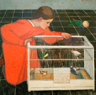 Silvia Koller mit Vogelkäfig von Broncia Koller-Pinell. Verfügbar als Kunstdruck auf Leinwand, Fotopapier, Aquarellkarton, Naturpapier oder Japanpapier.