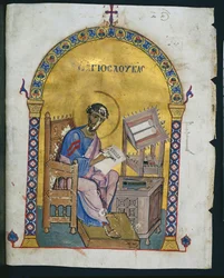 Blatt aus einem Lektionar mit St. Lukas, 1057-1063(Leaf from a Lectionary with St. Luke, 1057-1063)Byzantine |