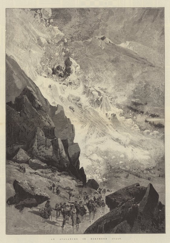 lawine · nord italien · naturkatastrophen · lawinen · italien · piemont · frassino · dramatisch · Private Collection / Bridgeman Images · / Look and Learn |