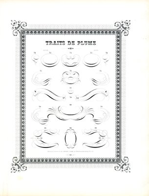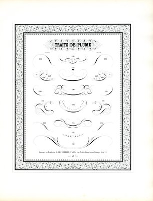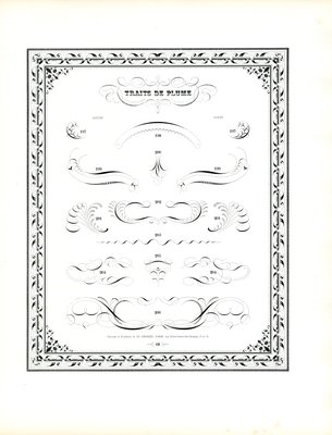 Kalligraphische Federverzierungen mit floralem Rahmen(Calligraphic Pen Flourishes with Floral Border (print))Charles Derriey |