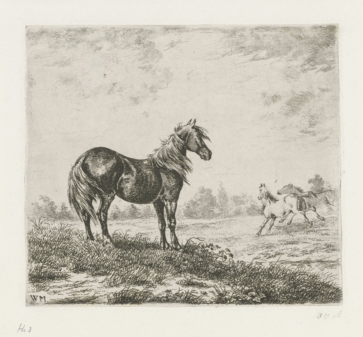 Landschaft mit drei Pferden(Landschap met drie paarden)Christiaan Wilhelmus Moorrees(print maker),Christiaan Wilhelmus Moorrees(after own design by) |