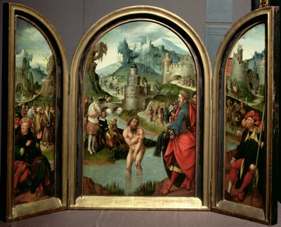 Der Prophet Elisa heilt den syrischen Hauptmann Naeman von Lepra im Jordan(The prophet Elisa heals the Syrian Captain Naeman from leprosy in the waters of the Jordan river (painting on oakwood))Cornelis Engebrechtsz |