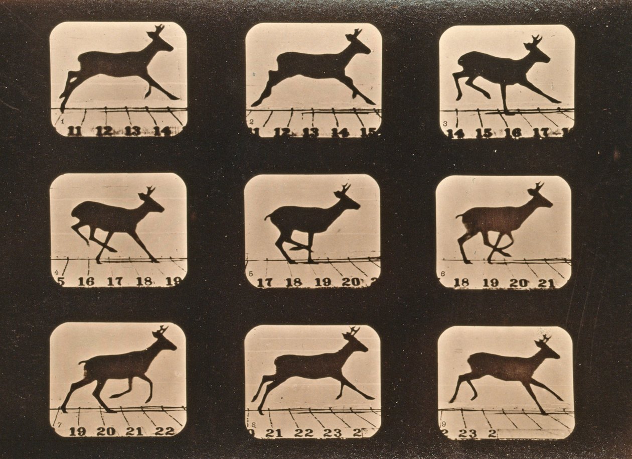 Bildsequenz eines laufenden Hirsches, 'Animal Locomotion' Serie, ca. 1881(Image sequence of a running Deer, 'Animal Locomotion' series, c.1881 )Eadweard Muybridge |