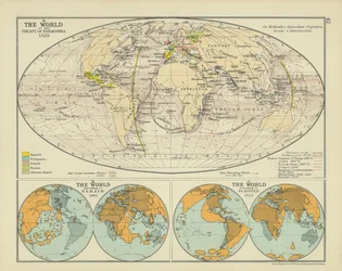 Die Welt beim Vertrag von Saragossa(The World at the Treaty of Saragossa (colour litho))English School |