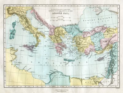 Darstellung der Missionsreisen und der letzten Reise des Apostels Paulus (Farblitho)(Illustrating the Missionary Journeys and Last Voyage of the Apostle Paul (colour litho))English School |