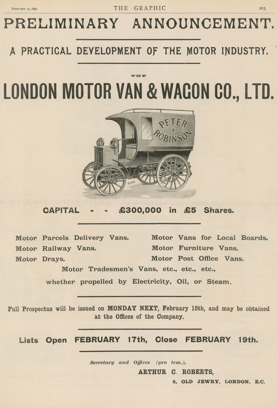 anzeige · werbung · kraftfahrzeuge · automobile · vans · london motor van · wagen · gmbh · automobilindustrie · automobilwerbung · Private Collection / Bridgeman Images · / Look and Learn |