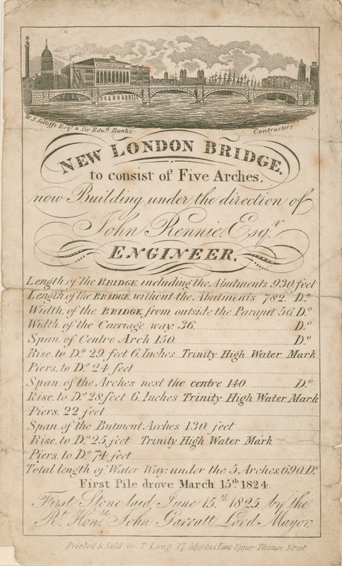neue londoner brücke · john rennie · techniker · fluss · themse · spezifikationen · handel · karte · Private Collection / Bridgeman Images · / Look and Learn |