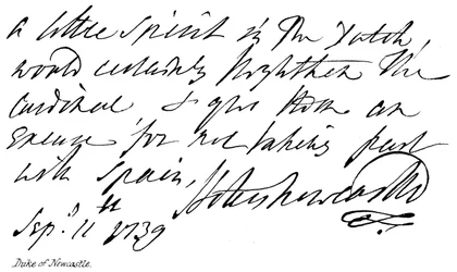 autogramm · hologramm · handschrift · schreiben · beispiel · herzog von newcastle · Private Collection / Bridgeman Images · / Look and Learn