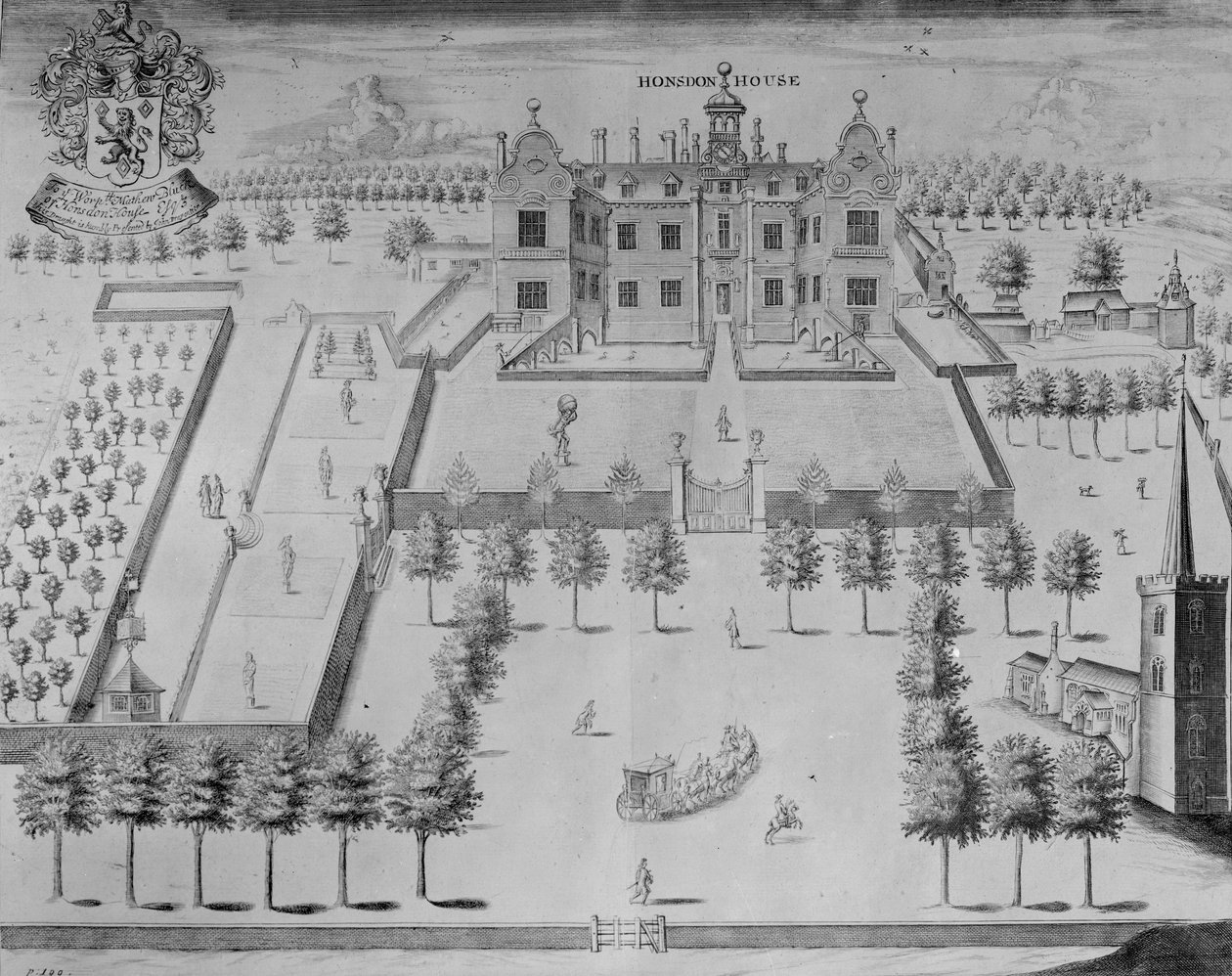 hertfordshire · architektur · wassergraben · königliche residenz · gärten · tudor · formelle gärten · außenanlagen · mauern · wappen · kirche · obstgarten · tore · pferd und wagen · turmhaus · hunsdon-turm · elisabethaner · Private Collection / Bridgeman Images |