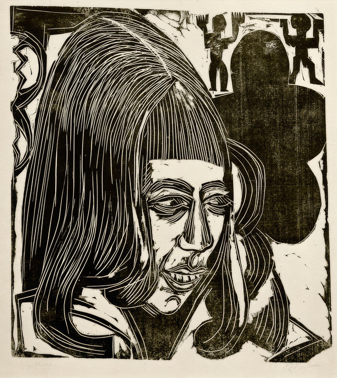 deutsche · kunst · brücke · expressionismus · frau · frisur · halbprofil · junge · frau · kopf · kunst · lächeln · langes · haar · mensch · mimik · mittelscheitel · pony · portrait · signatur · personen · dorothea · sternheim · technik · druckgrafik · grafik · holzschnitt · tochter · Sternheim · Berlin, Brücke Museum / akg-images |