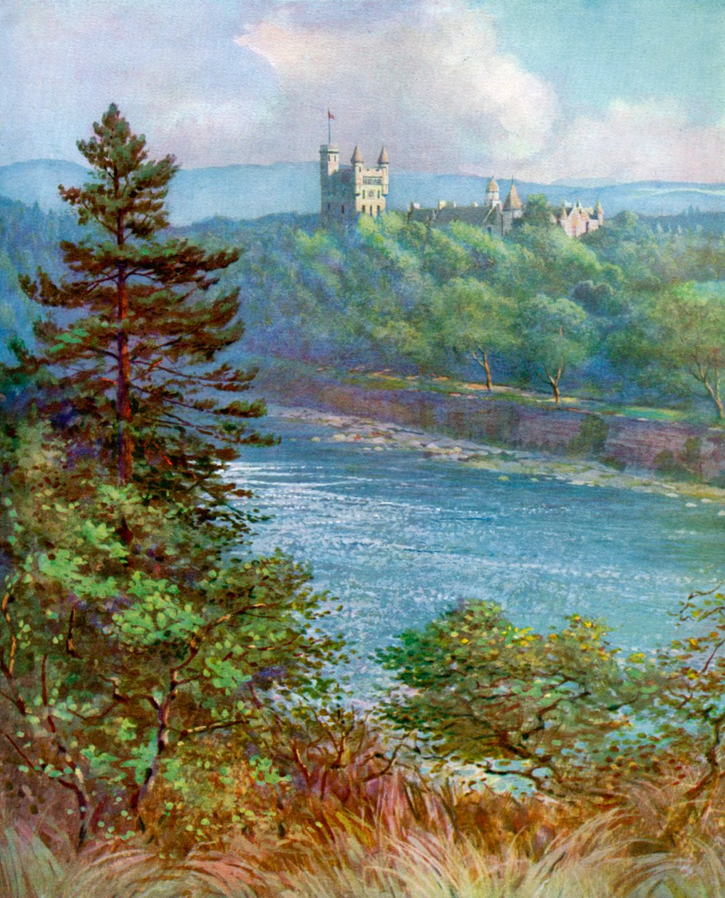 natur · fluß · baum · gebäude · gebäude · leute · architektur · betrieb · künste · anstrich · land · hochländer · kunst · britisch · geographie · schloß · farbe · farbe · nadelbaum · schottland · königlich · verstärkung · position · schottisch · jahrhundert · großbritannien · abgabe · zwanziger jahre · aberdeenshire · 19. jahrhundert · zwanziger jahre · fluß dee · 20. jahrhundert · 19.jahrhundert · scots · landscape · fc varley · varley · The Print Collector/Heritage Images |