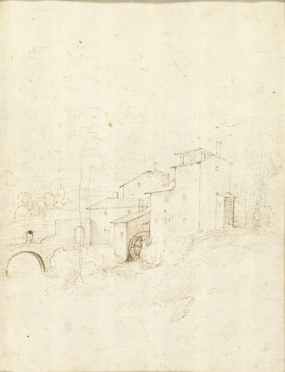 Wassermühle mit Figuren auf einer Bogenbrücke(Watermill with Figures on an Arched Bridge)Fra Bartolommeo |