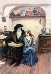 william shakespeare · könig lear · cordelia · verrückt · spielen · englische literatur · theater · kinder · mädchen · sitzen auf dem knie · Private Collection / Bridgeman Images · / Look and Learn |