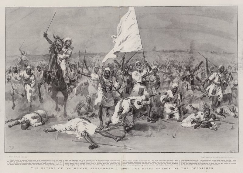 Die Schlacht von Omdurman, 2. September 1898, der erste Angriff der Derwische(The Battle of Omdurman, 2 September 1898, the First Charge of the Dervishes )Frank Dadd |