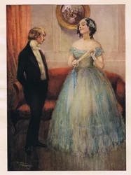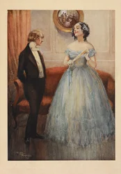 kunst · reynolds frank (1876–1953) · vereinigtes königreich · europa · illustrator · innenarchitektur · Älteste · kostüme · england · viktorianisch · tochter · kleid · miss larkins · dickens · david copperfield · gravur · mzengraving · Private Collection / Bridgeman Images