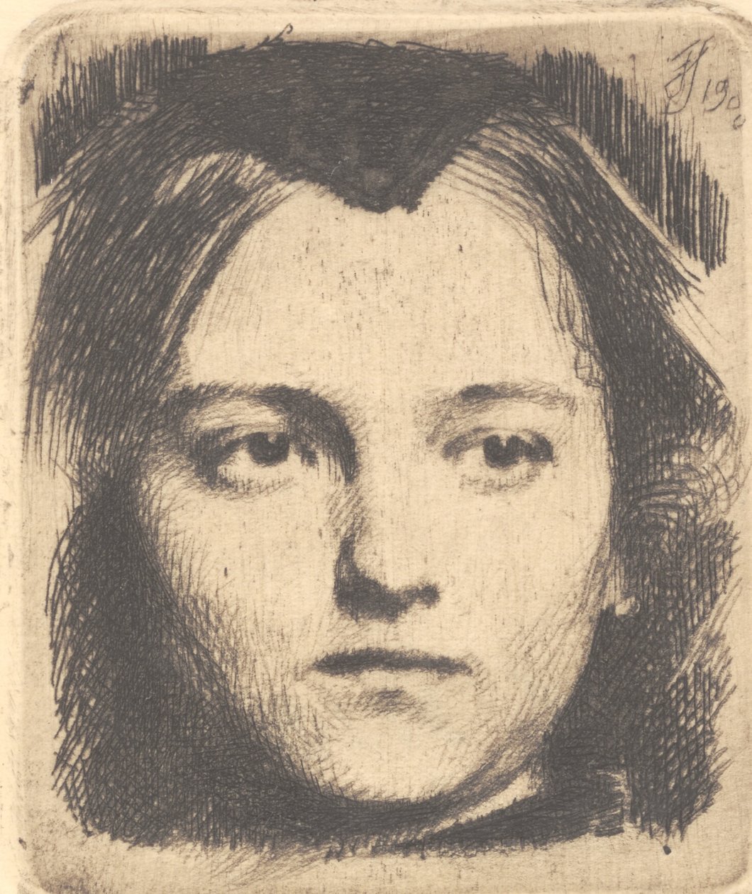 Junges Frauenkopf, en face, mit Spitze. Probedruck(Ungt kvindehoved, en face, med snip. Prøveplade)Frans Schwartz |