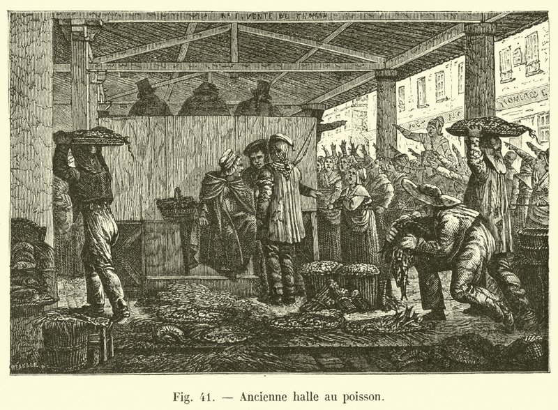 frankreich · paris · der friedhof · unschuldige heilige · der bezirk · hall · halle · fischen · fischen · Markt · Private Collection / Bridgeman Images · / Look and Learn |