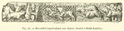 Relief, das eine Jagd darstellt, gefunden in Saint-Landry(Bas-relief representant une chasse, trouve a Saint-Landry )French School |