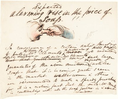Erwartet - alarmierender Anstieg des Seifenpreises!(Expected--alarming rise in the price of soap! (pen and brown ink with pink, blue, brown, and green wash))George Cruikshank |
