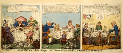 John Bulls drei Stufen oder Von Gut zu Schlecht und Von Schlecht zu Schlimmer, 1815(John Bull's Three Stages or From Good to Bad and From Bad to Worse, 1815 (hand-coloured engraving))George Cruikshank |