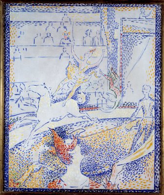 Zirkus. Eine Tänzerin macht eine akrobatische Nummer auf dem Pferd und ein Clown(Circus A dancer doing an aerobatic number on horseback and a clown. Sketch by Georges Seurat (1859-1891) 1891 Sun. 0,55x0,46 m Paris, musee d'Orsay)Georges Pierre Seurat |
