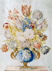 objekt · tulpe · blume · barock · renaissance-barockstile und -perioden · aquarell · vegetation · bewegliche moderne arbeit · arbeit · angewandte kunst und handwerk · blumenkasten · blatt · pflanzliches element oder komposition · europa · schmuck · malerei · vase · Museum of Still Life, deposits, Poggio a Caiano, Florence, Tuscany, Italy / Bridgeman Images