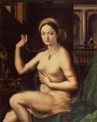 manierismus · schleier · spiegelbild · perlenkette · armbinde · eitelkeit · busen · nacktheit · nackt · Pushkin Museum, Moscow, Russia / Bridgeman Images