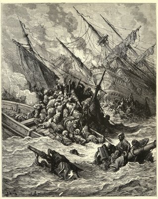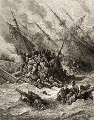 Die Seeschlacht von Lepanto, Gravur von Gustave Doré aus 'Die Geschichte der Kreuzzüge' von Joseph François Michaud(“The Naval Battle of Lepanto” It set up a Spanish, Venetian alliance and Pope forces to the Ottomans in 1571 off Greece. Engraving by Gustave Dore (1832-1883) from “The History of the Crusades” by Joseph Francois Michaud)Gustave Dore |