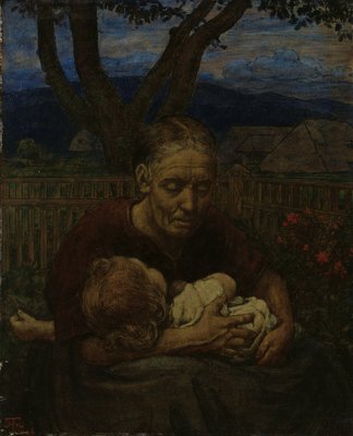 Mutter und Kind in einem Garten(Mother and Child in a garden)Hans Thoma |