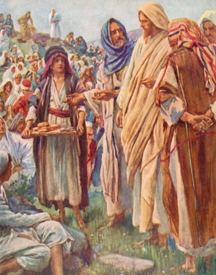 Die Brote und Fische, Johannes, 6, 9(The Loaves and Fishes, John, 6, 9 (colour litho))Harold Copping |