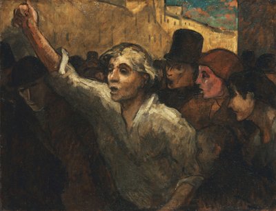 Honoré Daumier hegte Groll gegen die Oberschicht, die die Arbeiterklasse ausnutzte und somit diente ihn dies auch als Hauptmotiv für das Malen. Die Arbeiter die man auf dem Gemälde mit den Namen „L`émeute“ (Die Erhebung) sieht, rufen nach Veränderung was die damalige Realität wiederspiegelte. Die Menschen wurden wie Maschinen behandelt, doch sie wollen sich dies nicht länger gefallen lassen und wünschen sich Reformen. Das Bedürfnis nach dieser Reform ist in diesem Gemälde stark vertreten, mit den Daumier versucht, für die Gleichheit in allen Gesellschaftsklassen einzutreten. Er verstärkte die Aussage des Bildes durch die faustbewegende Bewegung des Mannes, der im Zentrum des Bildes steht. Dieser Mann ist die detailreichste Figur des Bildes, deckt den größten Raum des Bildes ab und trägt als einziger leuchtende Kleider, wodurch es dem Betrachter ermöglicht wird, sich auf den Mann zu konzentrieren. Daumier wollte das Leben der Arbeiter und ihre Kämpfe wahrheitsgemäß darstellen, was ihn dadurch gelungen ist.