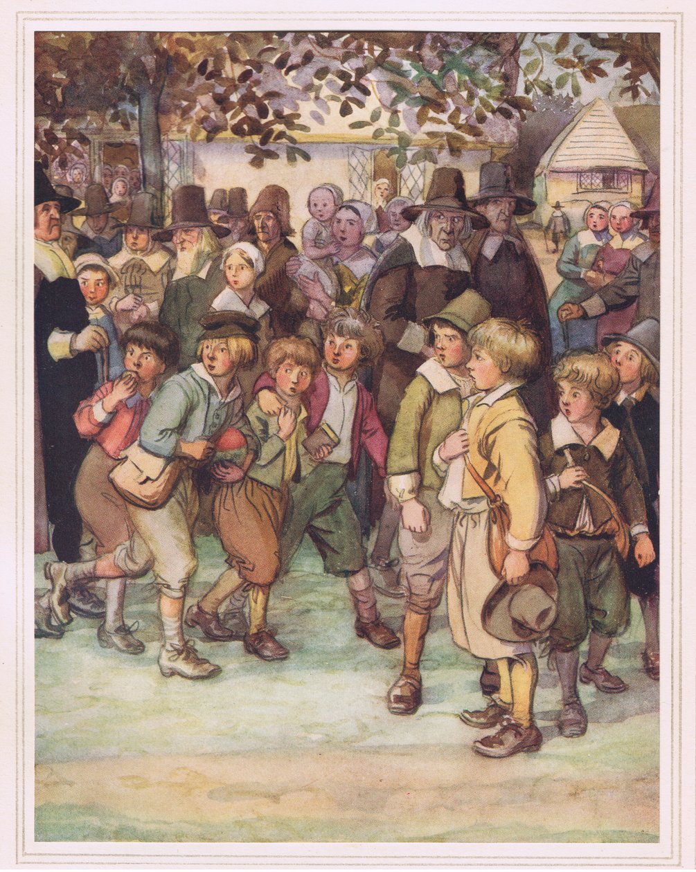 hawthorne · amerikanisch · puritaner · literatur · scharlachroter buchstabe · neu england · boston · menge · schüler · cotumes · versammlung · Private Collection / Bridgeman Images |