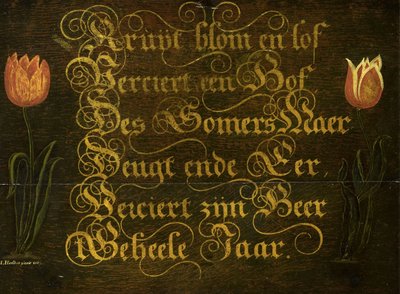 Ein kalligraphisches Sprichwort mit Tulpen(A Calligraphic Maxim with tulips)Isaac Hondius |