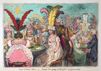 Lady Godinas Rummel;-oder-Peeping-Tom spioniert Pope-Joan aus(Lady Godina's Rout;-or-Peeping-Tom Spying out Pope-Joan)James Gillray,Hannah Humphrey(published by) |
