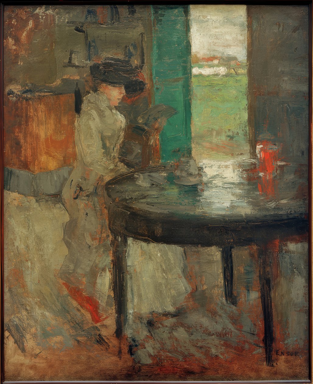 alleinstehende · belgische · kunst · einsamkeit · frau · frauenleben · impressionismus · interieur · kunst · mensch · portrait · sitzen · tisch · warten · technik · gemälde · malerei · / akg-images |