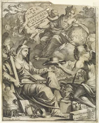 Allegorie auf die Kirchen- und Weltgeschichte(Allegorie op de kerk- en wereldgeschiedenis Titelpagina voor Willem Goeree, De kerklyke en weereldlyke historien. 1729 De kerk- en weereldlyke historie uyt d'Aal-oude aard-beschryving (title on object))Jan Goeree(print maker),Jan Goeree(after drawing by),Gerardus Borstius(publisher) |